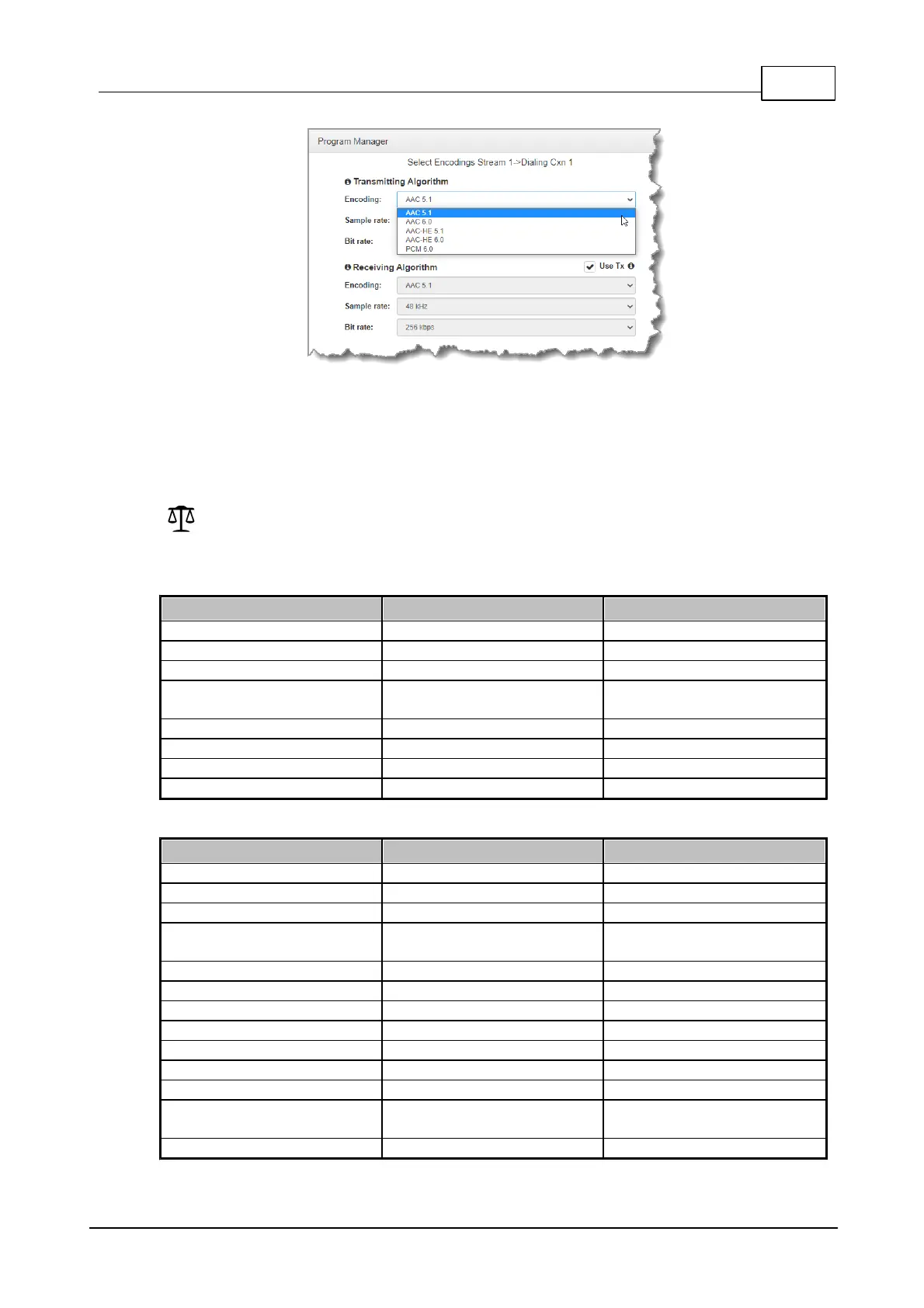 8.0, and 5.1 or 6.0, for streaming is determined when selecting the encoding algorithm when