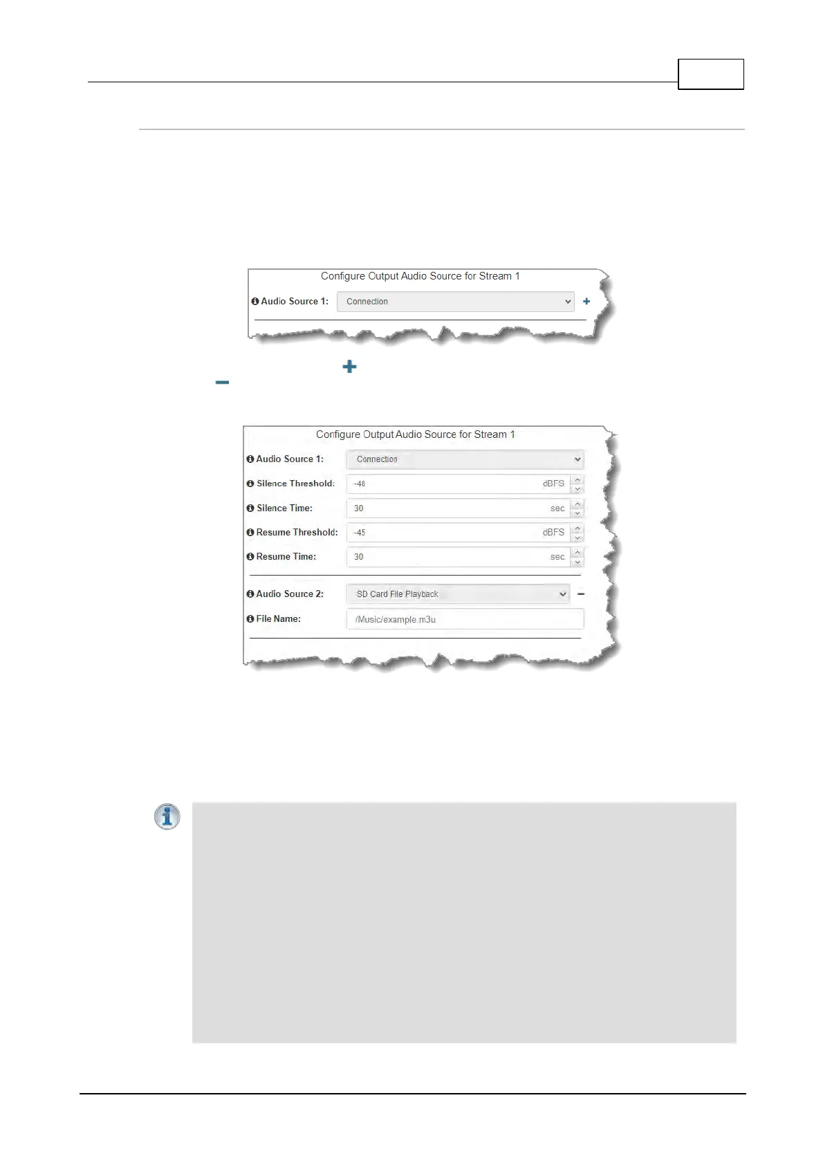 2. Click the blue Plus symbol to add a backup Output Audio Source, or click the Minus