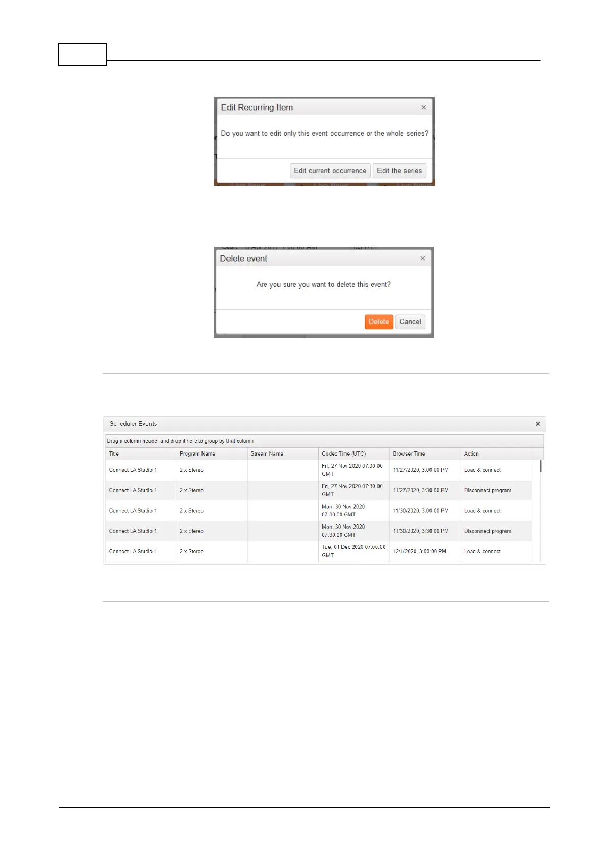 4. A confirmation dialog is presented to confirm the deletion of an event.