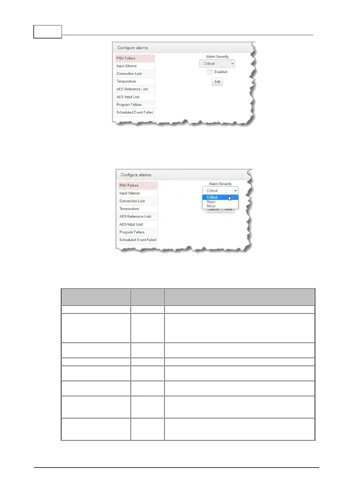4. Click the Enabled check-box to activate the alarm and then select an Alarm Severity level