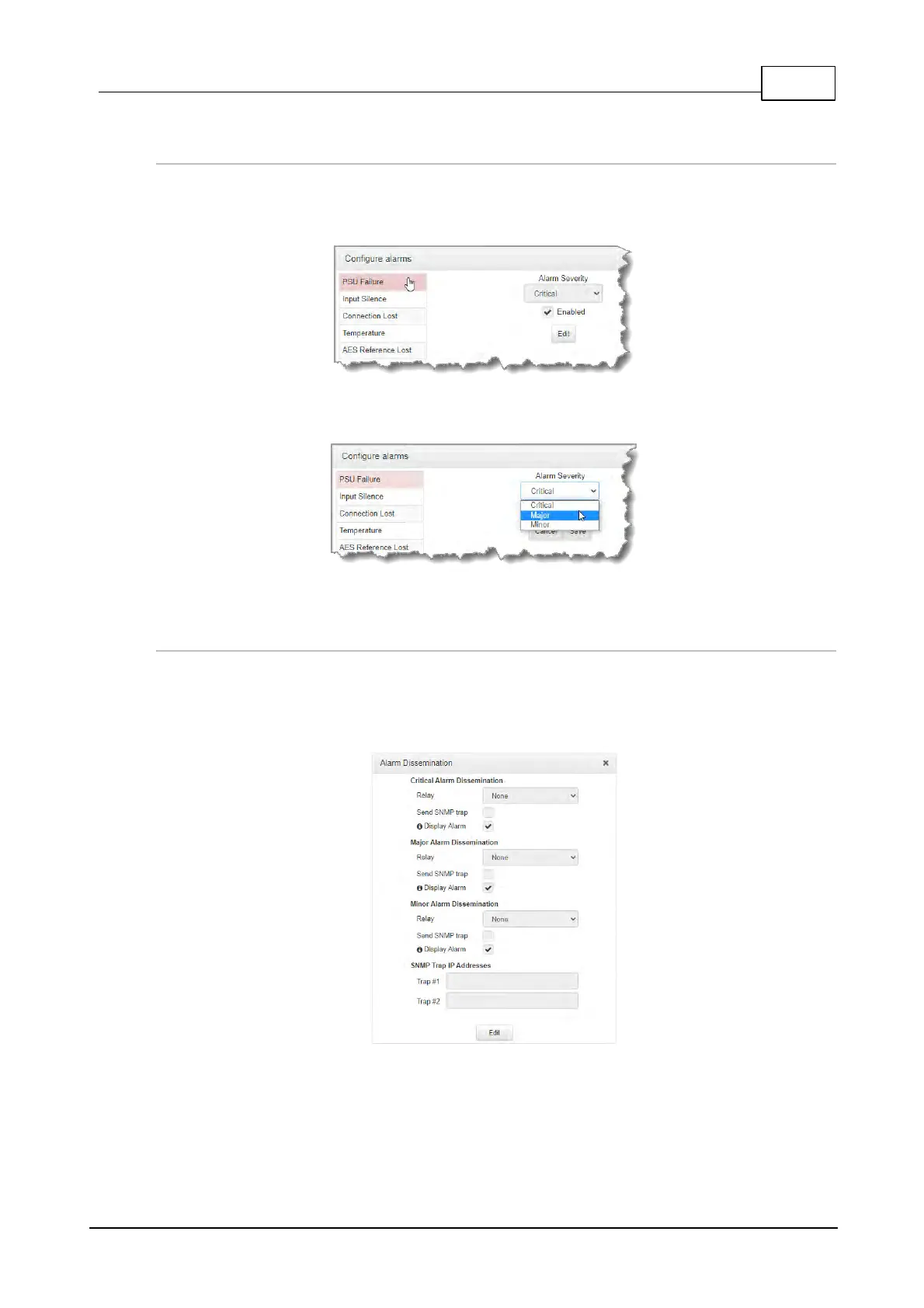 3. Select and configure relay, SNMP trap and alarm display settings for each Alarm Severity