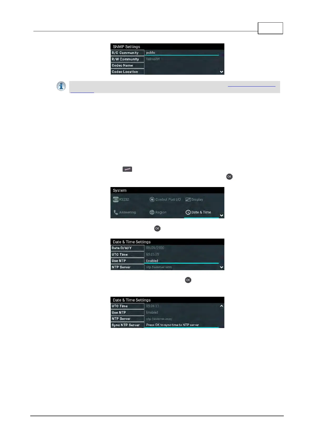 also possible to manually synchronize the time. Note: The codec will not ping a server while