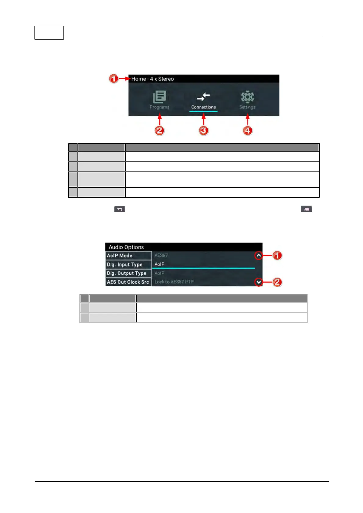 All front panel codec menus can be launched from the Home screen as follows: