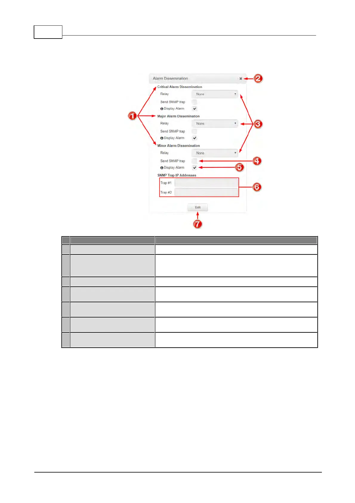 Click to edit alarm dissemination settings, or save configured