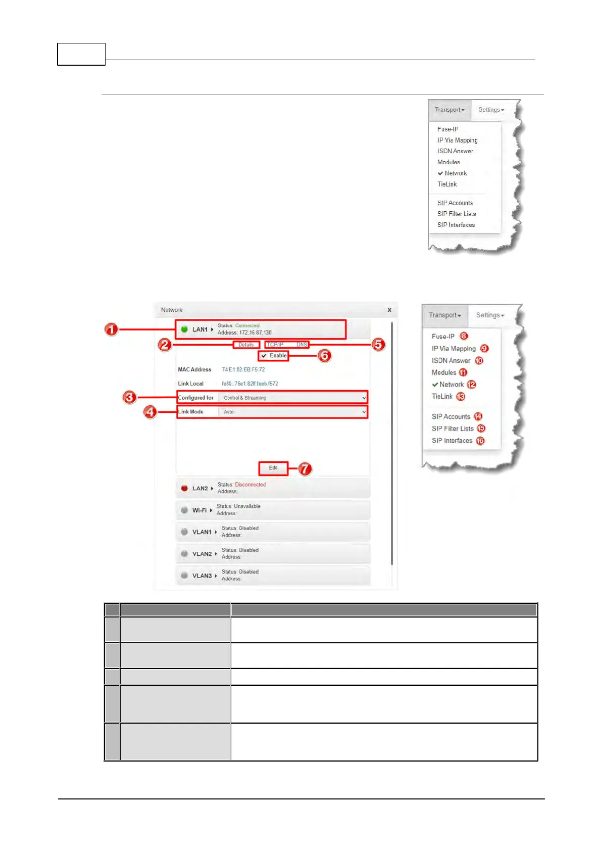 GUI. Each panel provides specific transport-related configuration