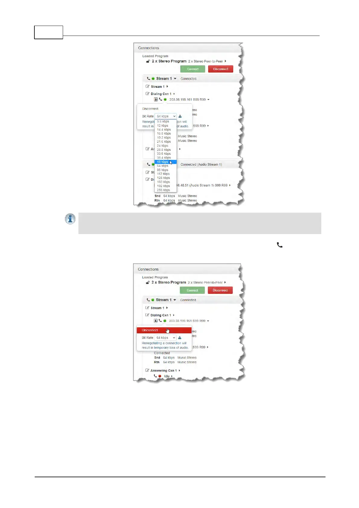 · It is not possible to renegotiate the connection bit rate of a SIP connection.