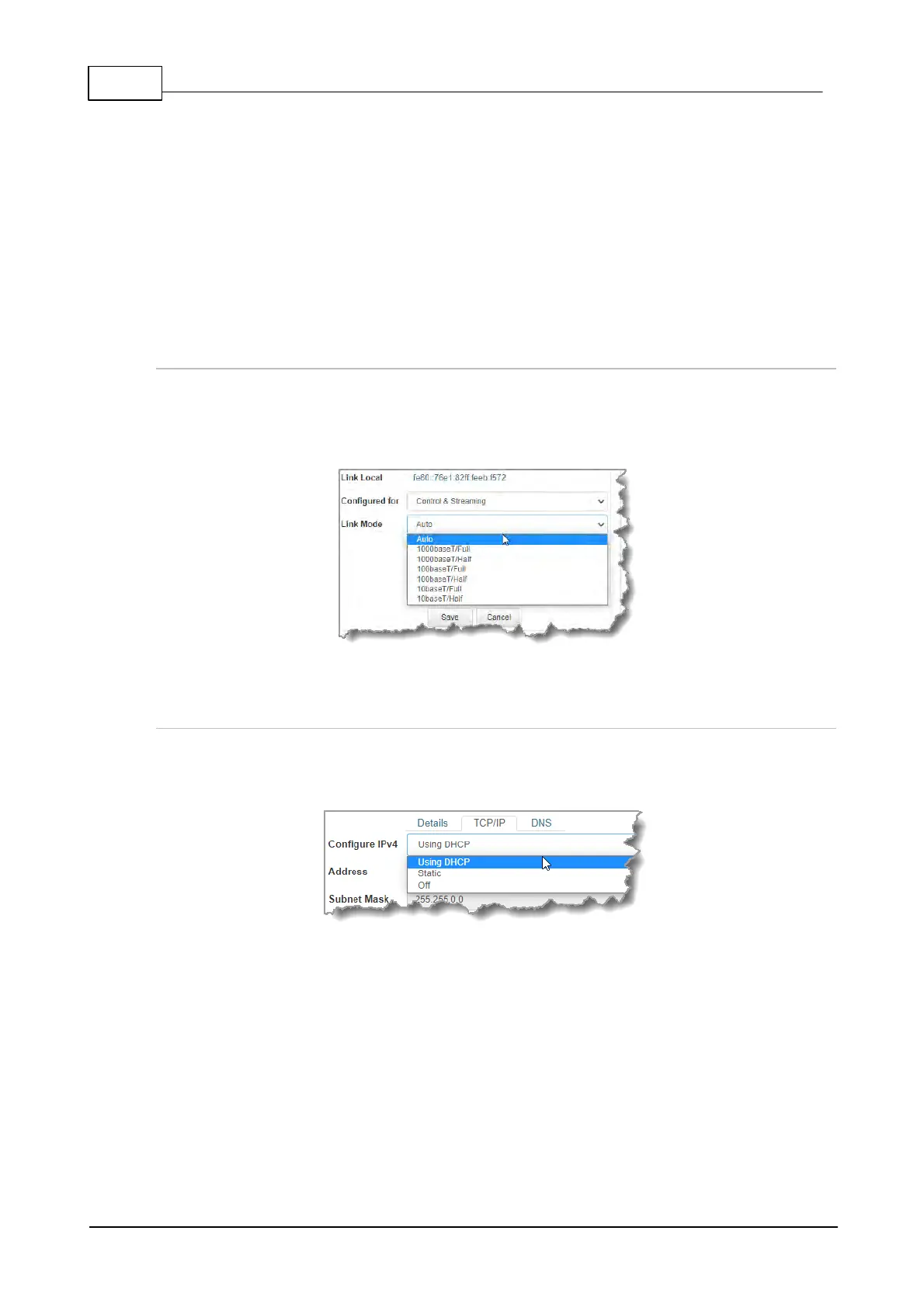 automatic DHCP address assignment, or manually configured static IPv4 address configuration via