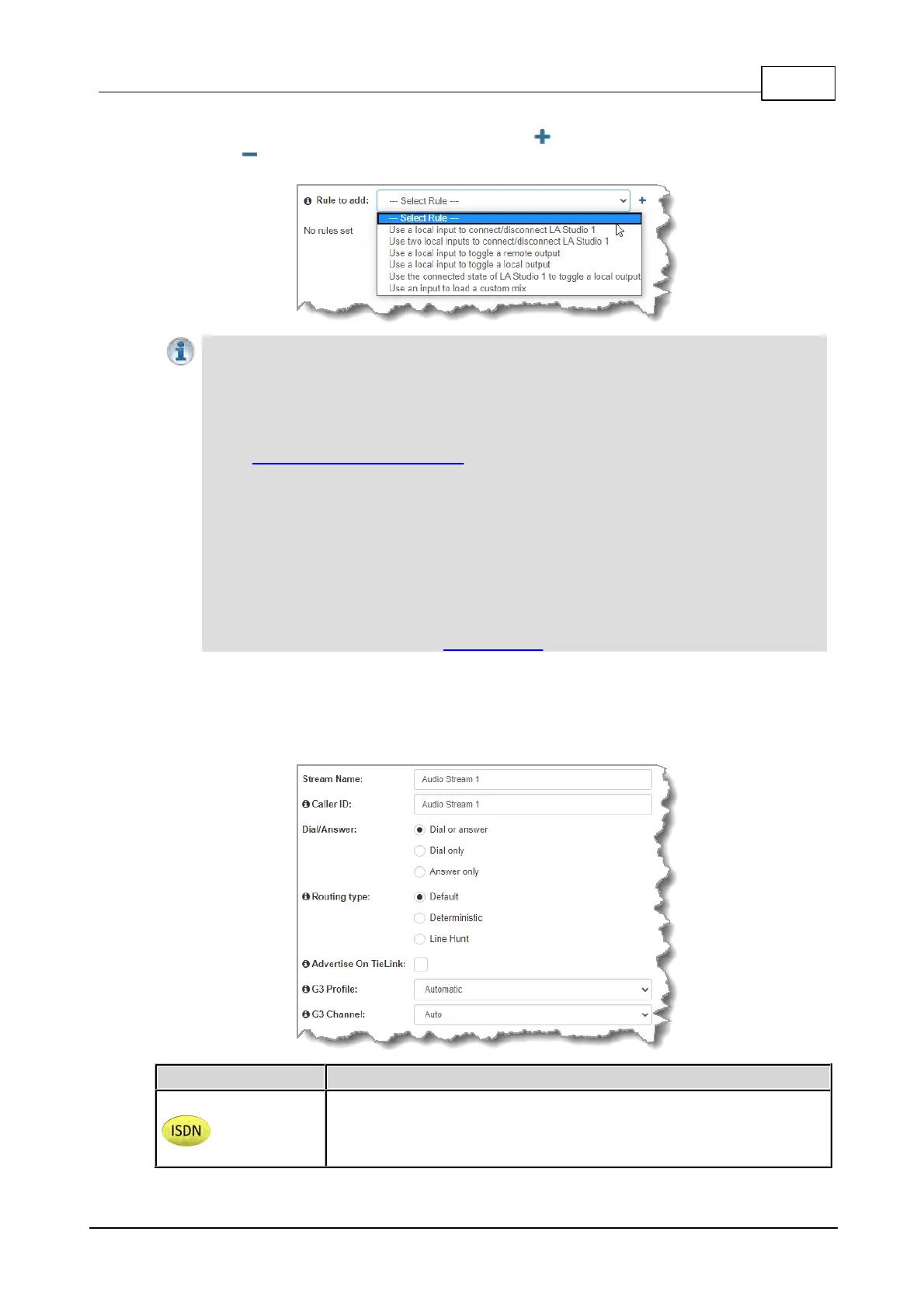 TieLink if configuring answering audio streams that will be used as dialing destinations in