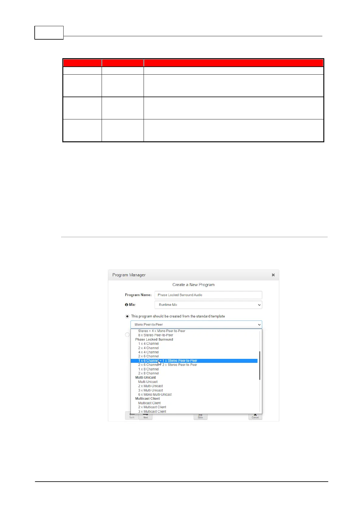 Displays program types that support 4 channels in/out