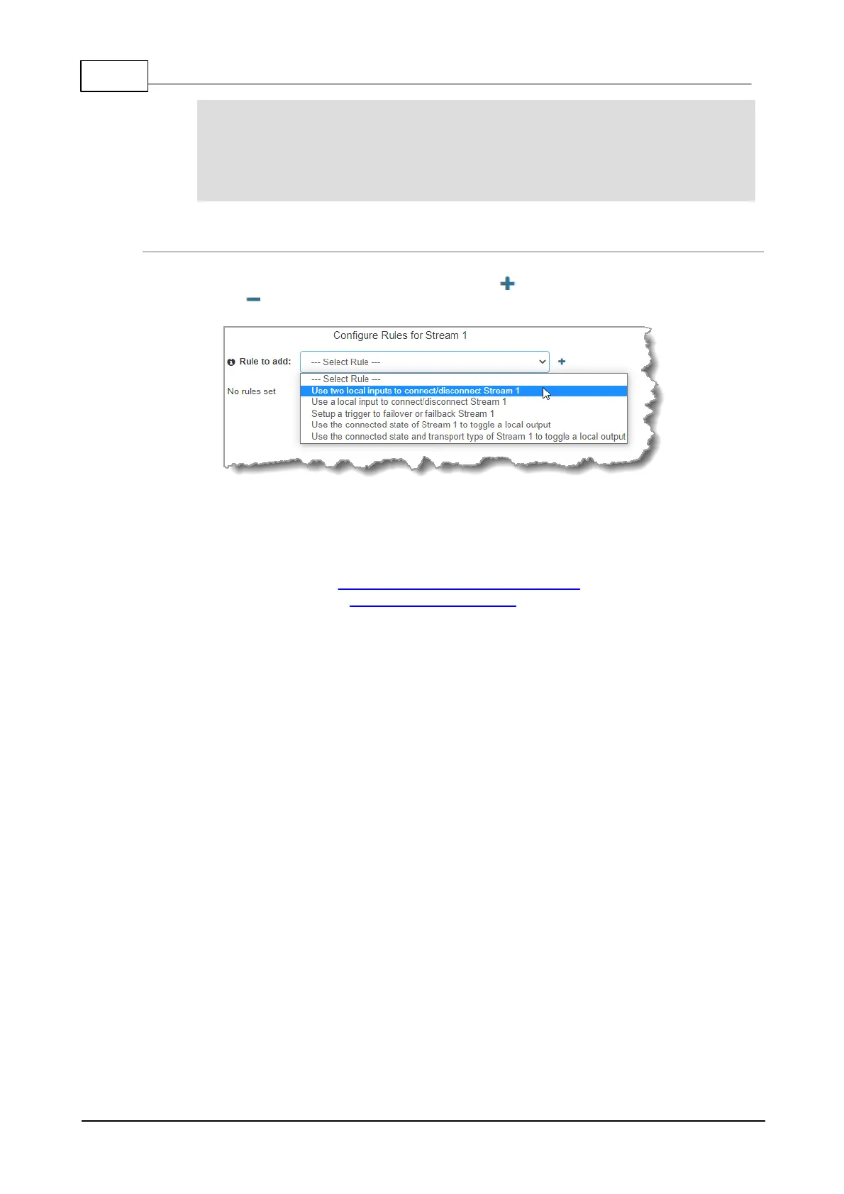 1. To configure new stream level rules click the drop-down arrow and select the preferred option