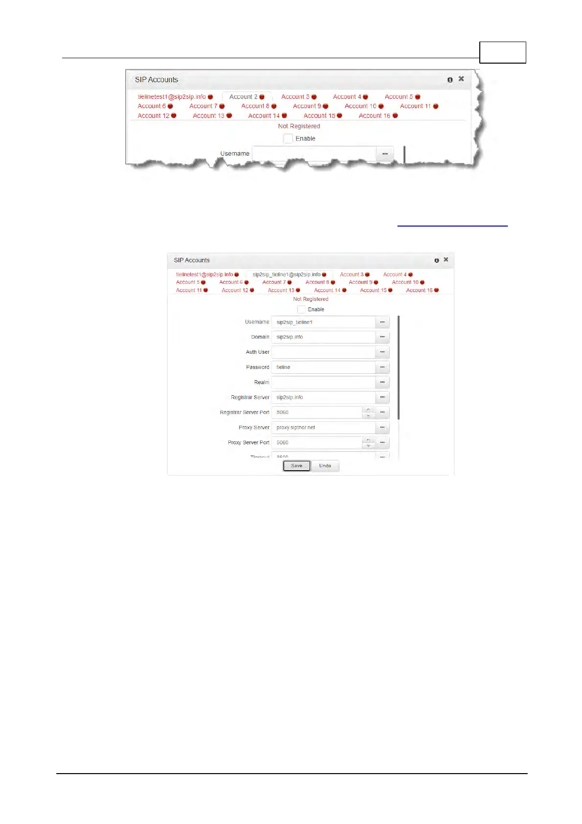 3. Enter the SIP account details into the relevant text boxes, including the registration