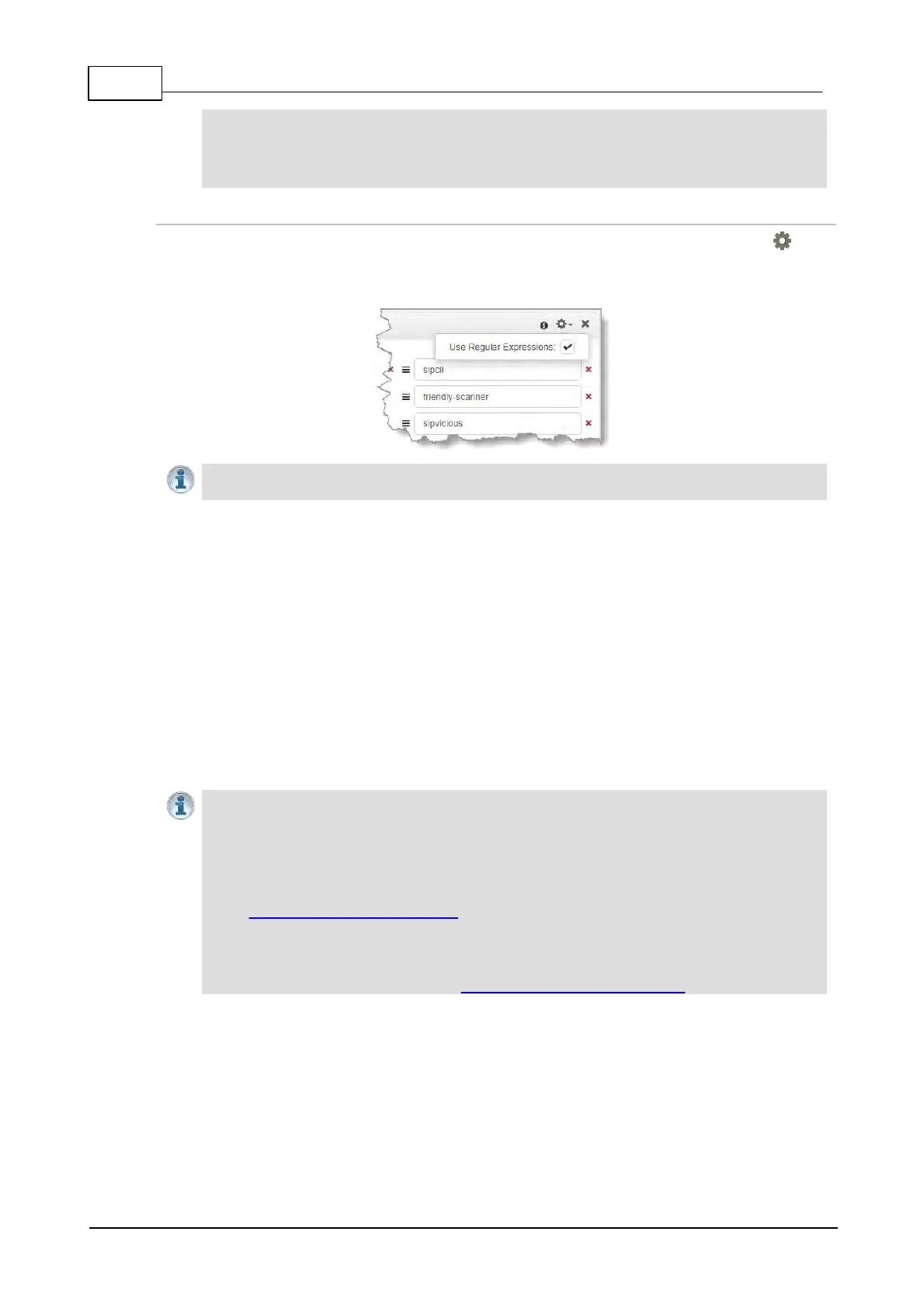 To filter using regular expressions in the SIP Filter Lists panel, click the Options symbol in the