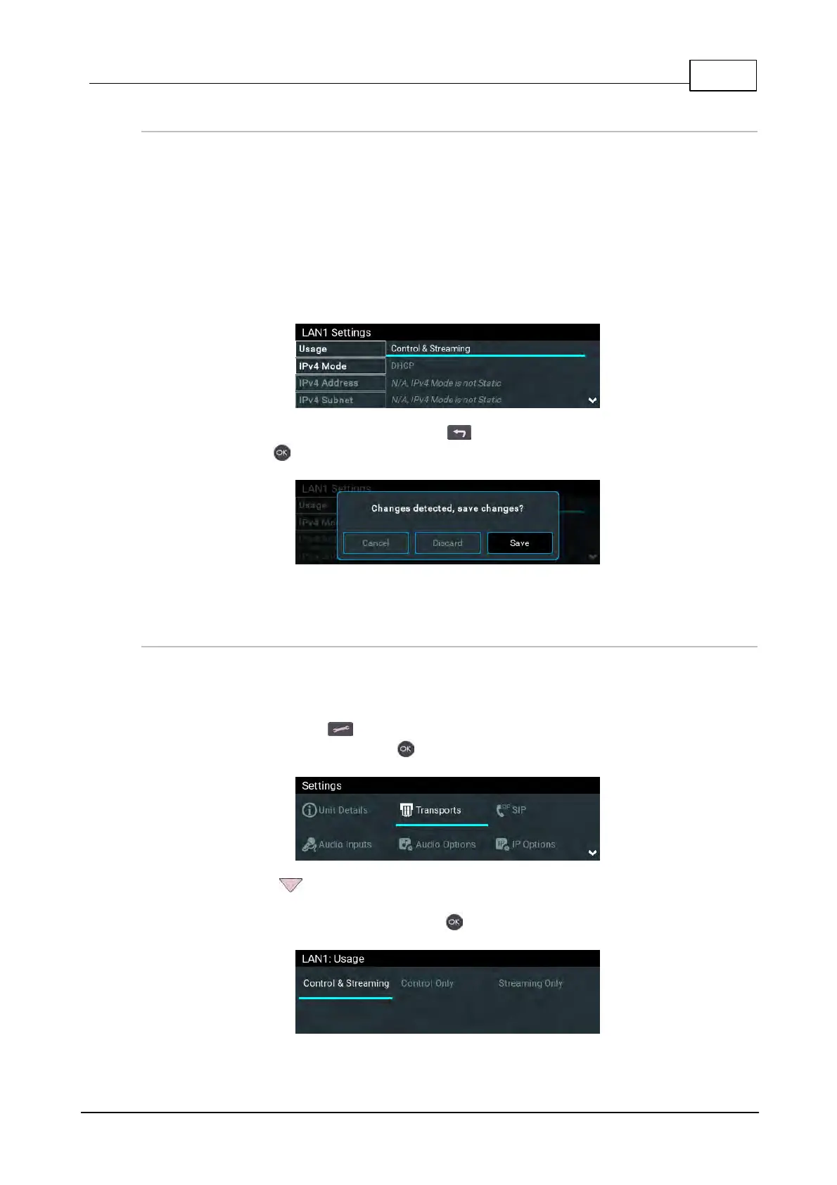 A range of options which can be viewed and configured via Settings > Transports > LAN1 / LAN2.