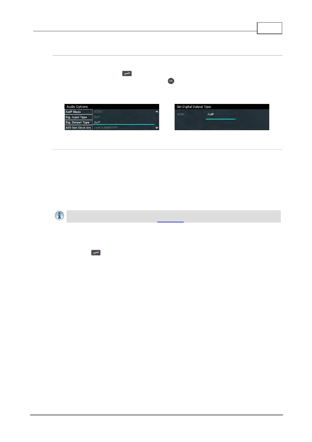 SETTINGS button and then Audio Options > AES3 Out Clock Src. This configures the