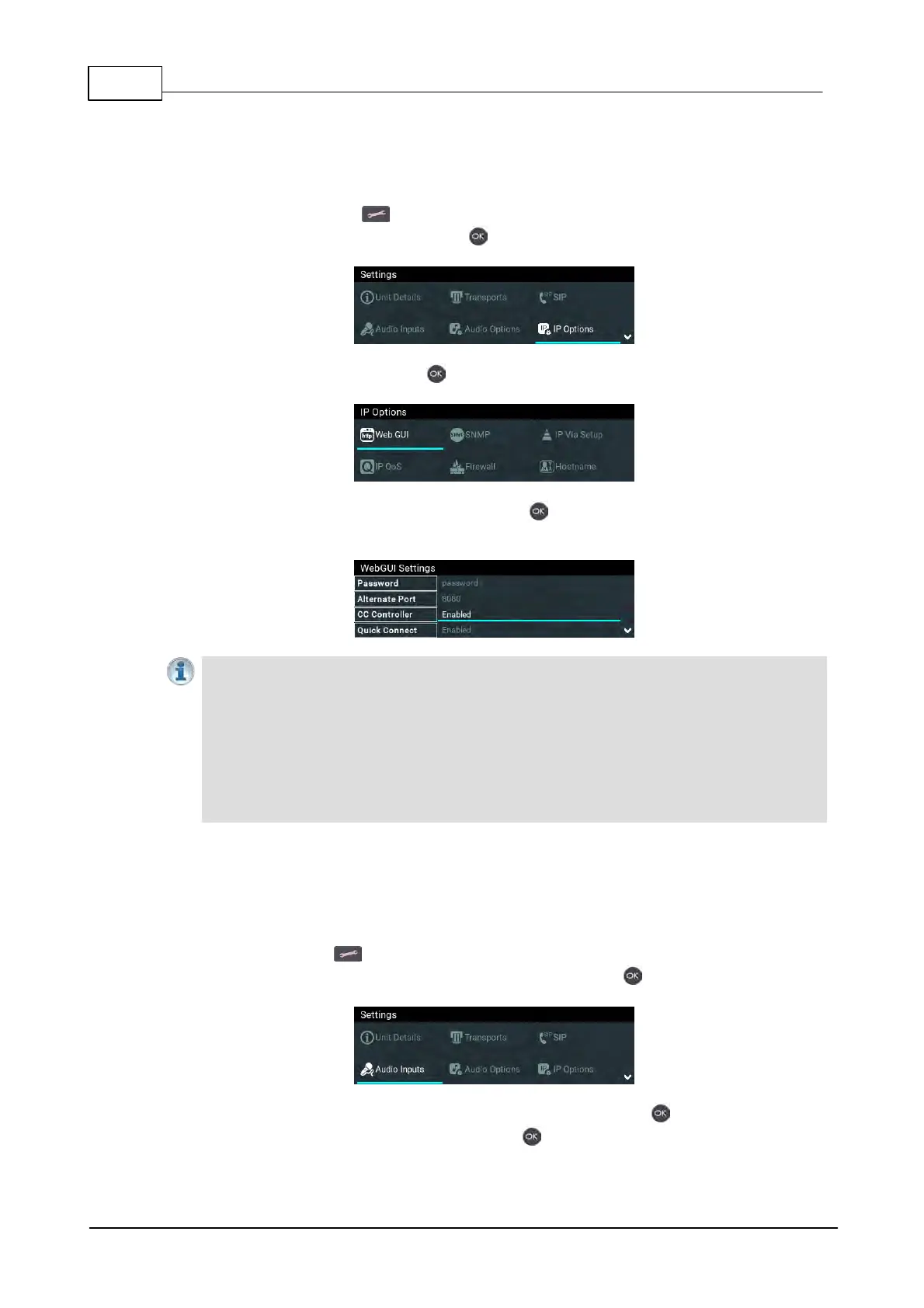 2. Use the navigation buttons to select Audio Inputs and press the button.