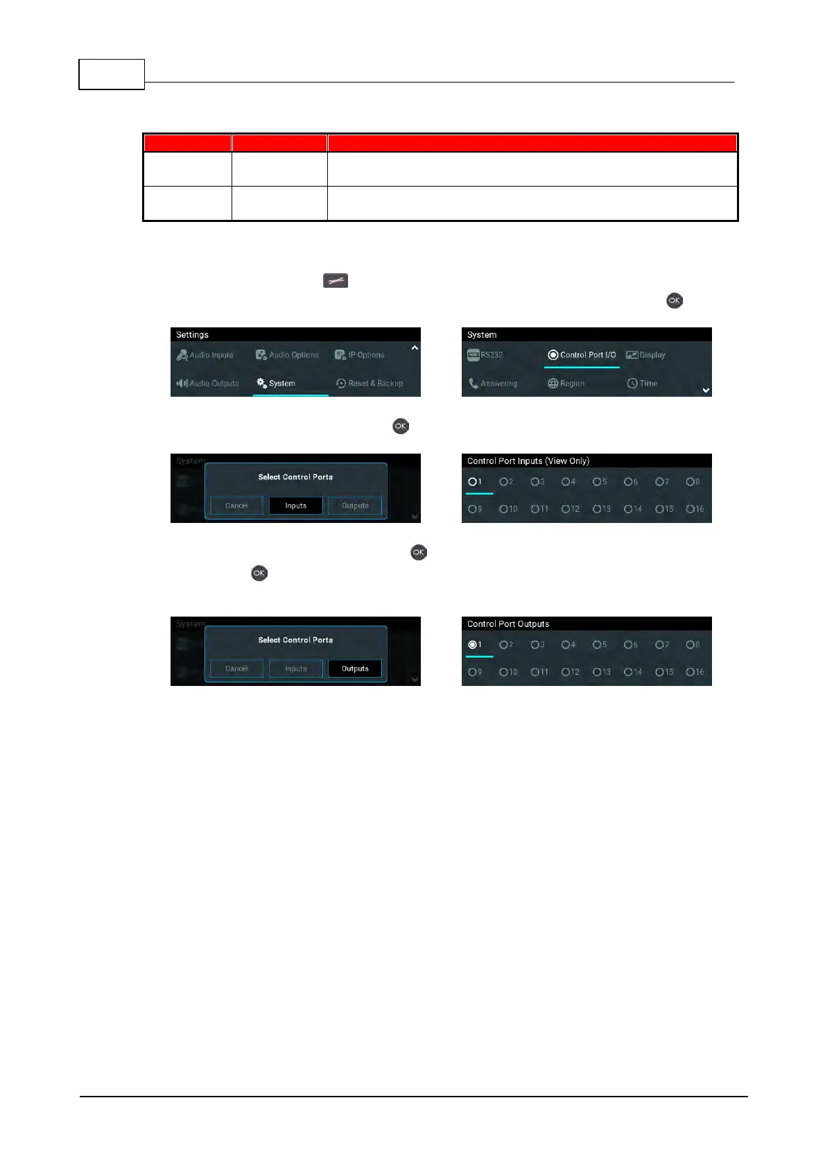 2. Use the navigation buttons to select System > Control Port I/O and press the button.
