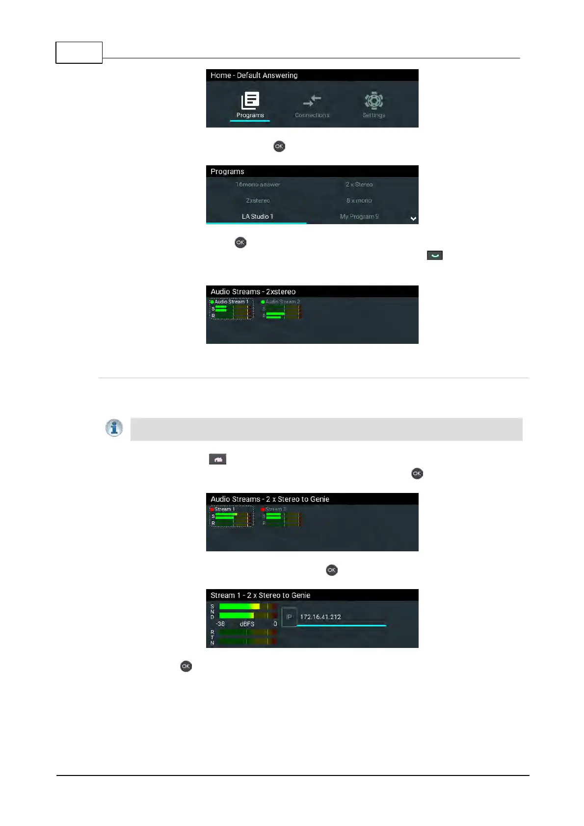 Important Note: The IP address for an audio stream connection can only be edited when it