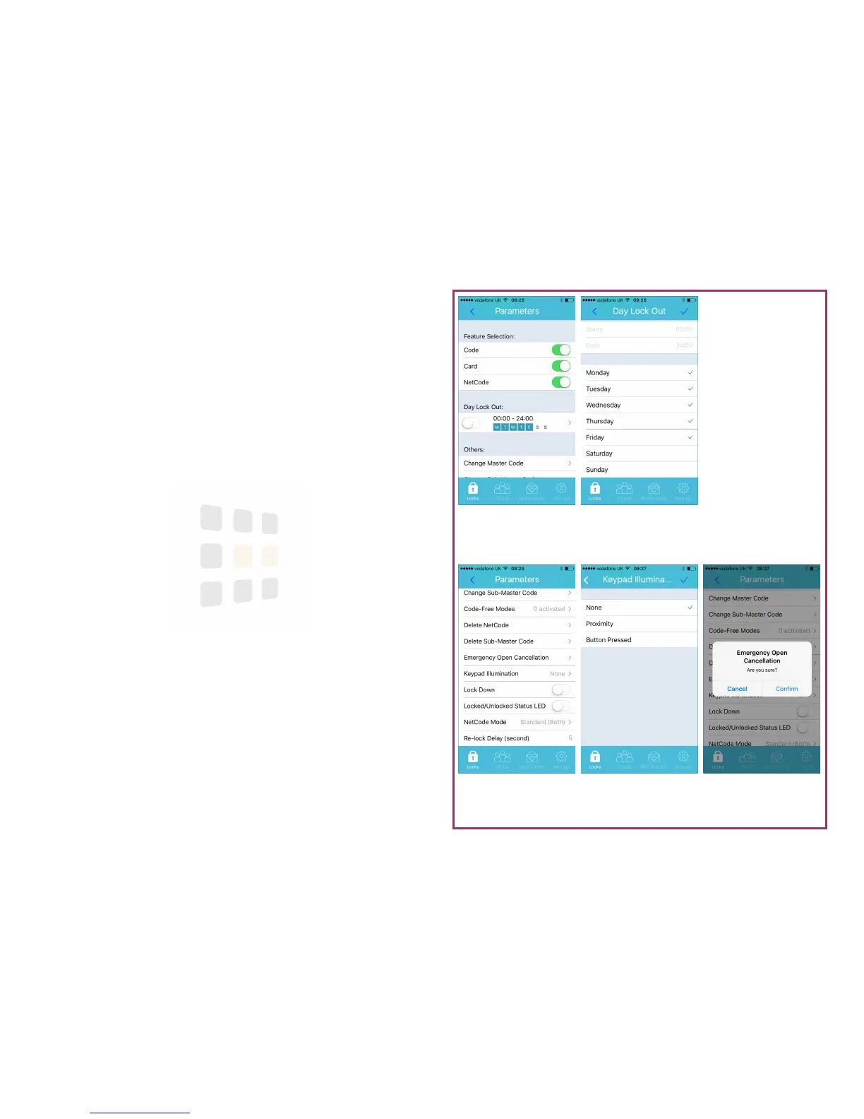 3. Touch the to confirm (this will enable Day Lock-Out if not already ena-