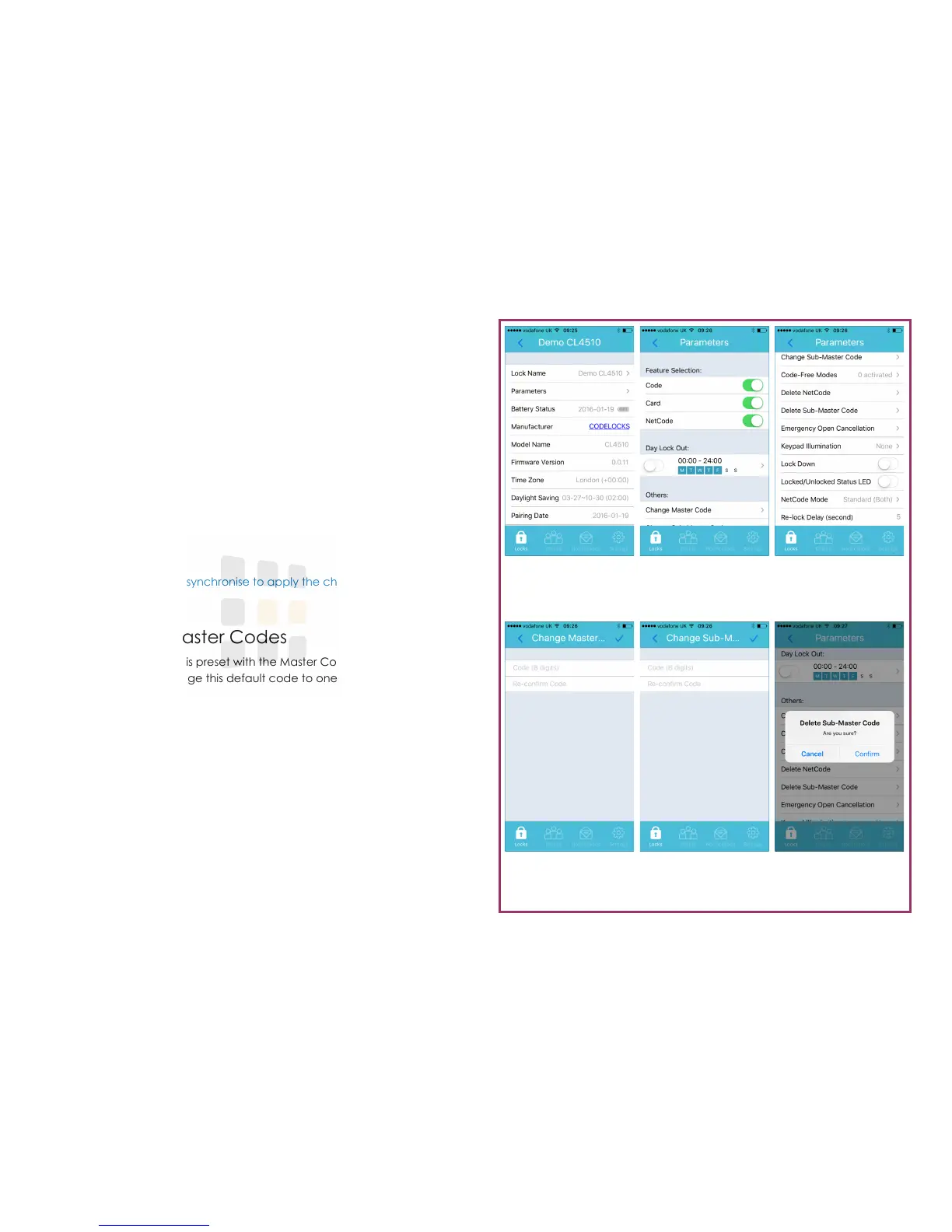 You can delete the Sub-Master Code by touching Delete Sub-Master Code on