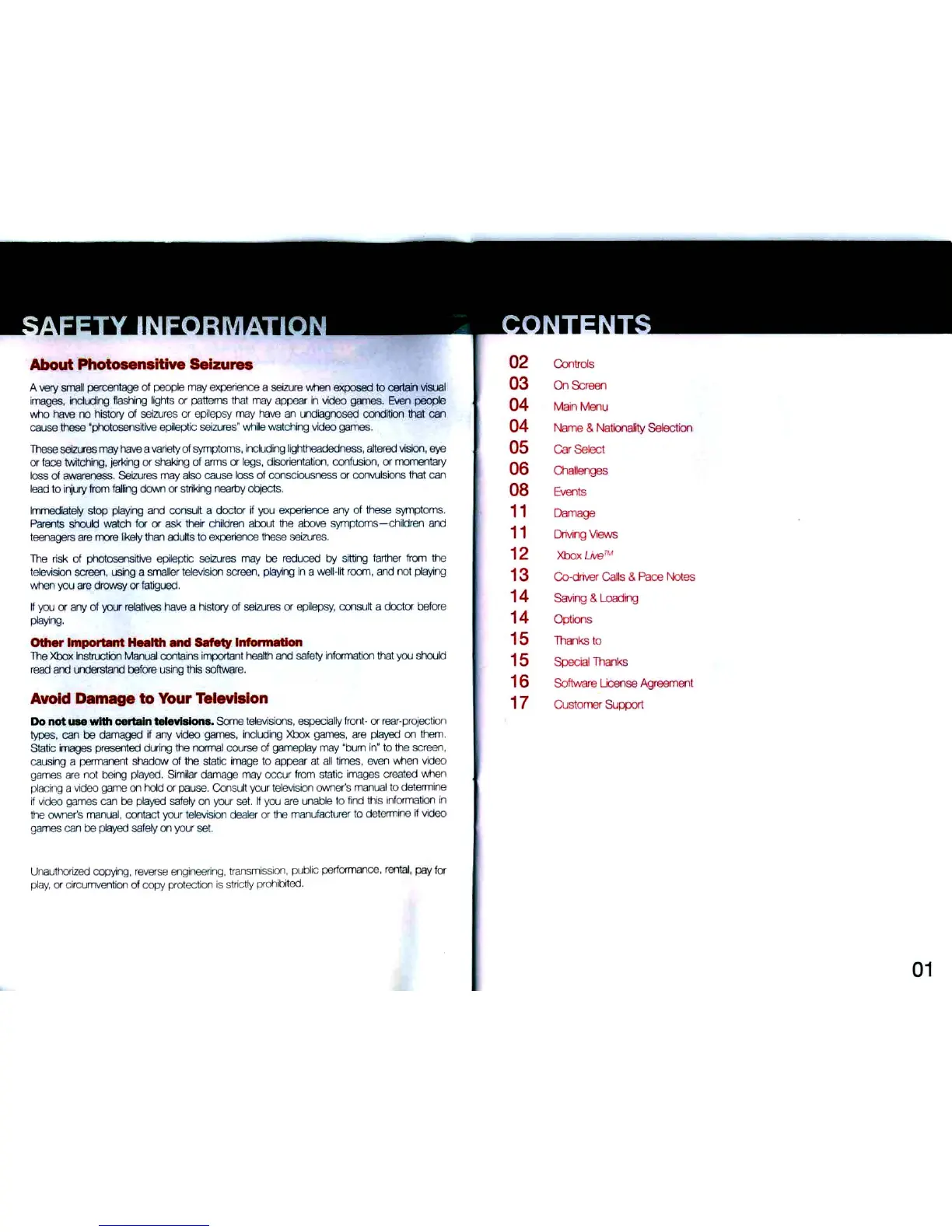 CodeMasters COLIN MCRAE RALLY 2005 - SAFETY INFORMATION; Photosensitive Seizures; Health and Safety Advice