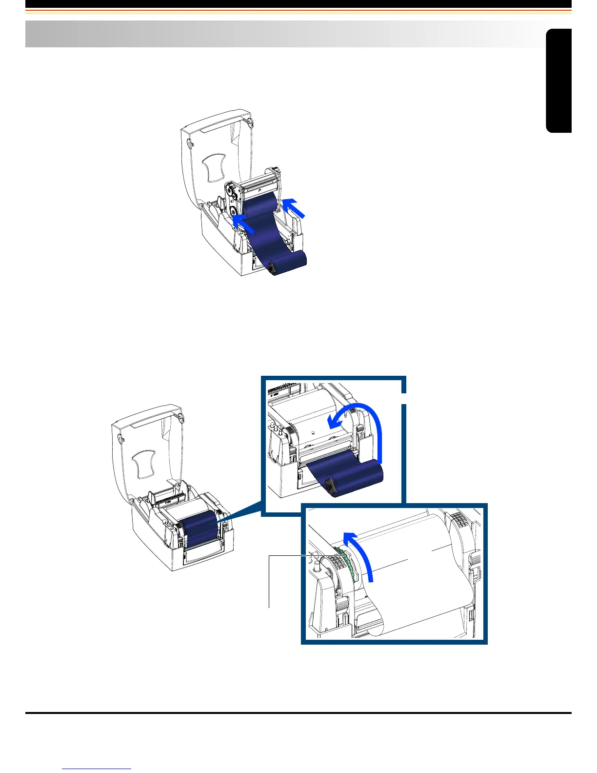Insert the ribbon rewind hub on the ribbon feed mechanism.