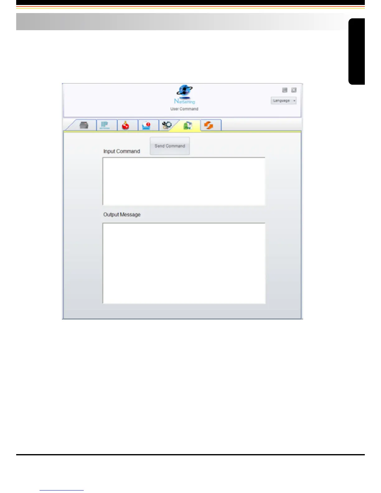 The “User Command” tab provides a communication interface for operator to control the printer. Input printer
