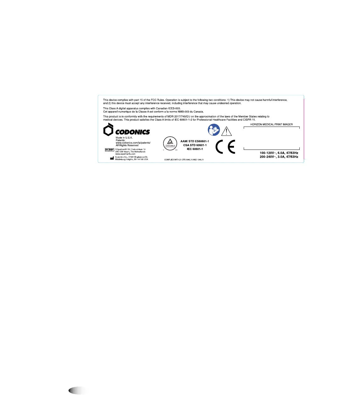 Codonics Horizon Series - Compliance