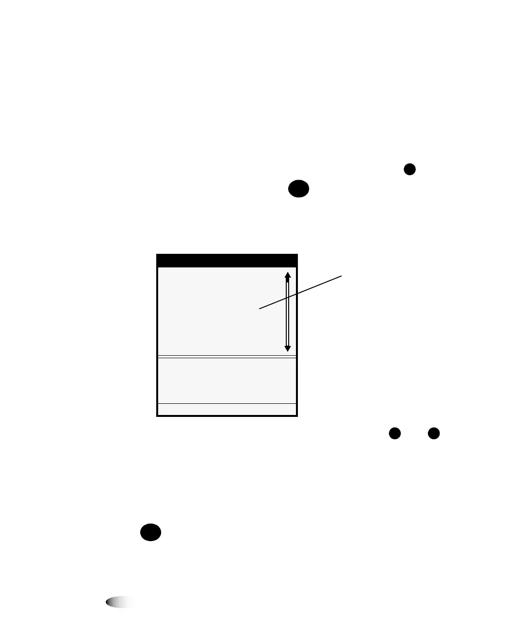 ) moves up and down through the list.