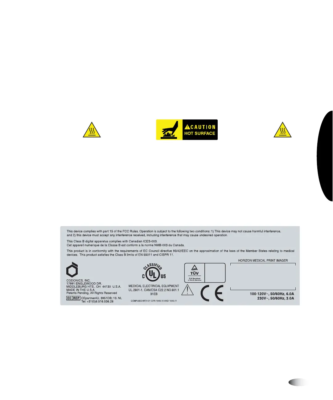 The Compliance label, which is affixed at the back of the imager, is