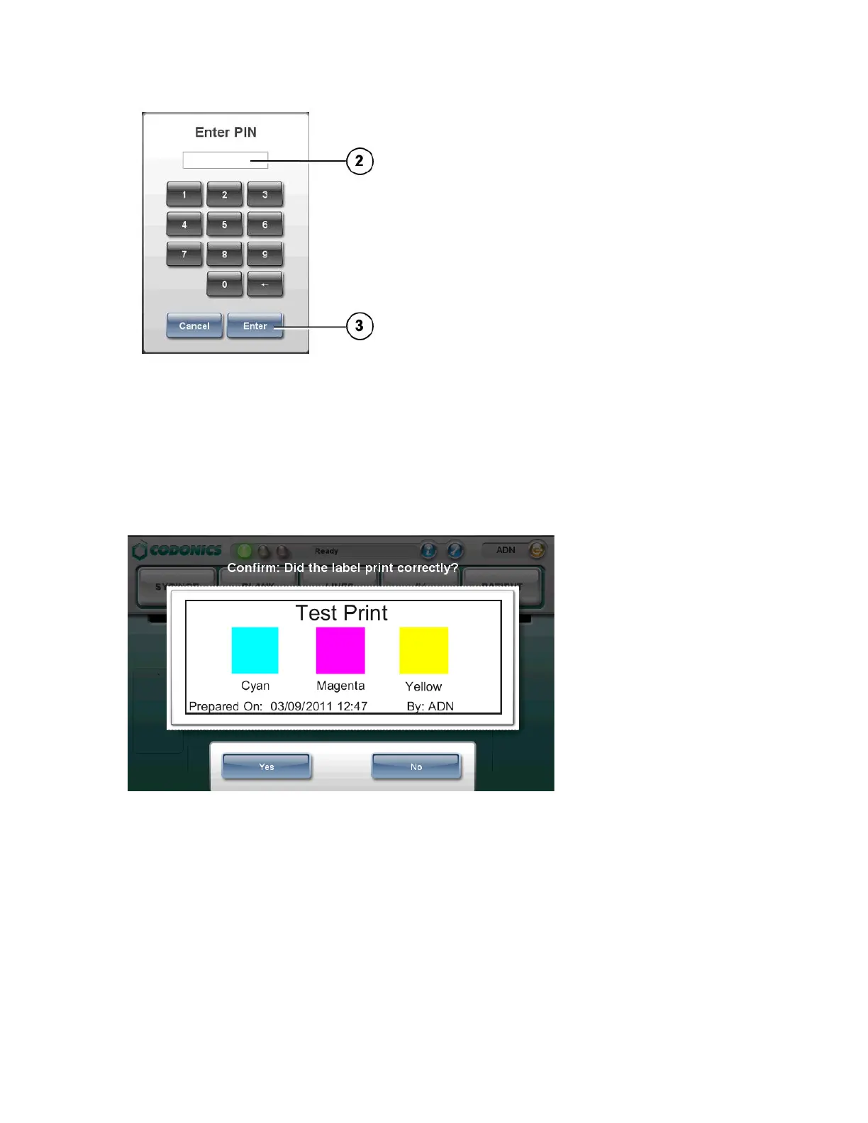 5. If the test label printed correctly, press the Yes button. The system is ready for