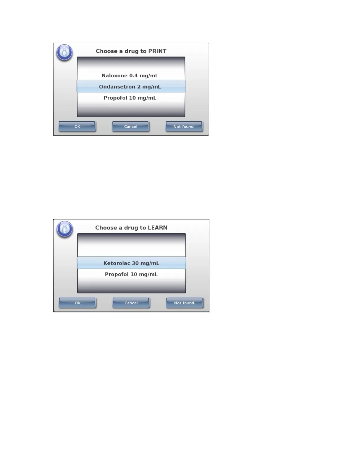 • If the correct drug is not found, press the Not Found button. The procedure ends. Contact