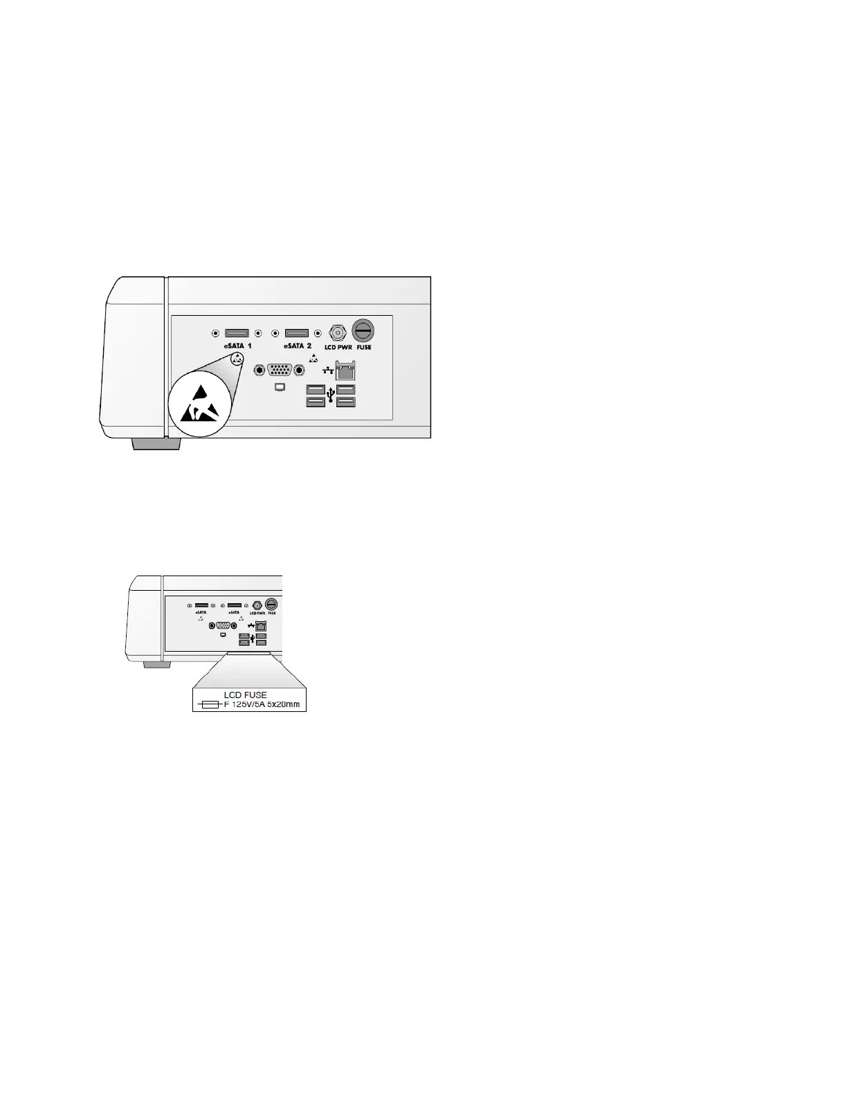 These connectors are marked with a precautionary ESD warning symbol, as shown below. Do not touch any of