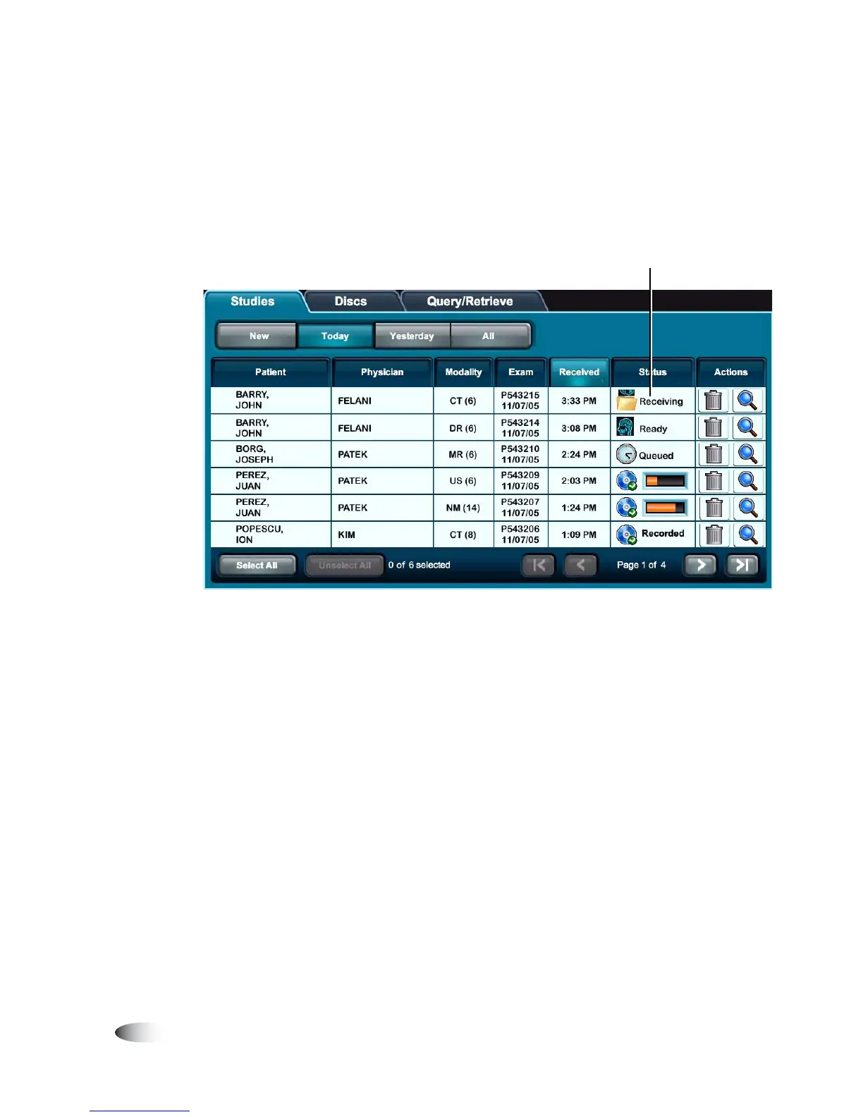 SCP device, the Studies tab displays automatically. The retrieved
