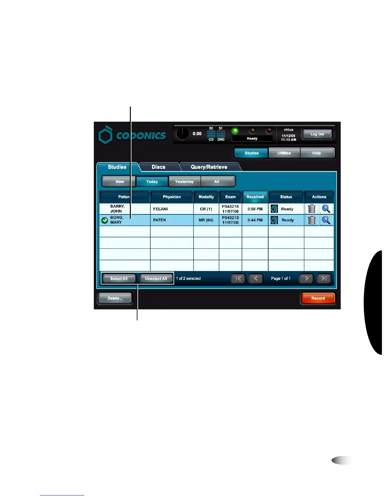 2. Touch each of the studies that you want to include on the disc.