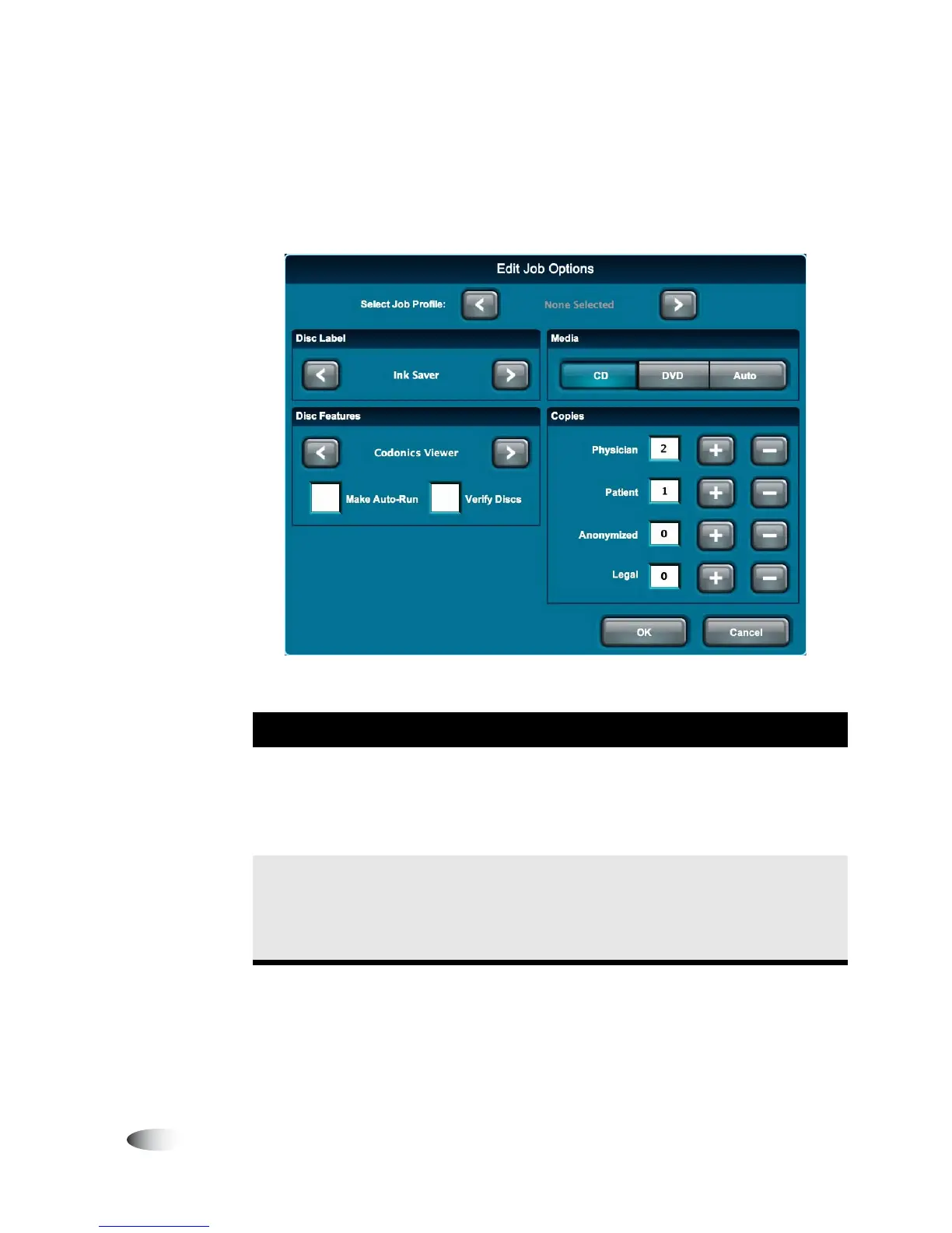 Select Job Profile Touch the arrow buttons to scroll through the list of available