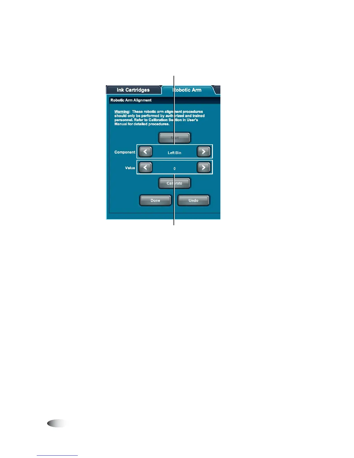 6. Touch the lower arrow buttons to set the calibration value, as