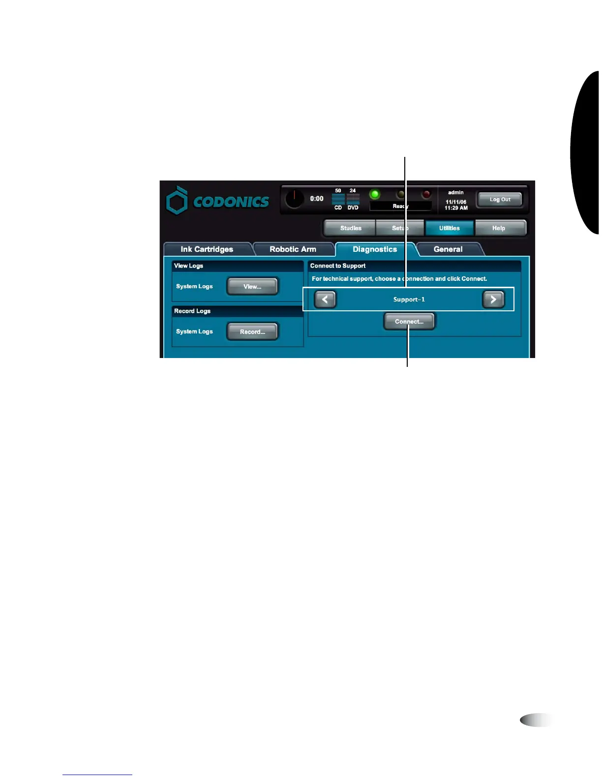 button to open the connection to Codonics