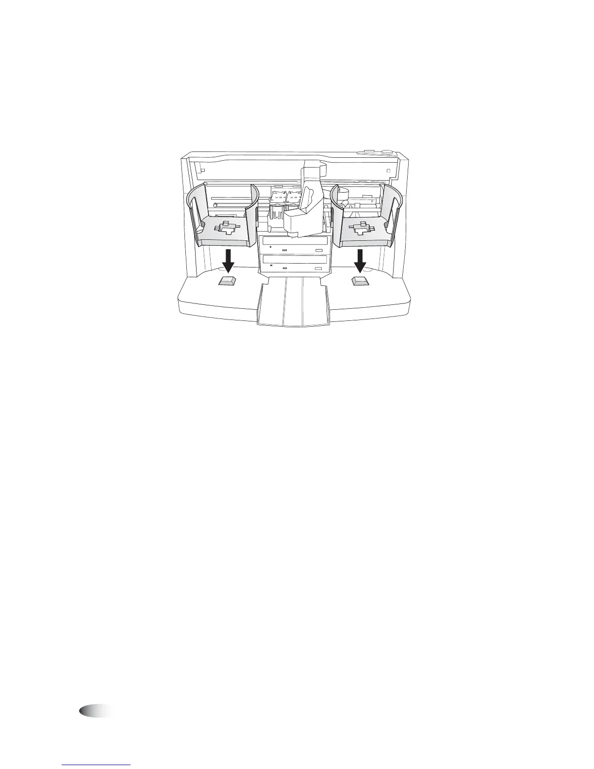 4. Install the two gray input bins on the left and right side, aligning