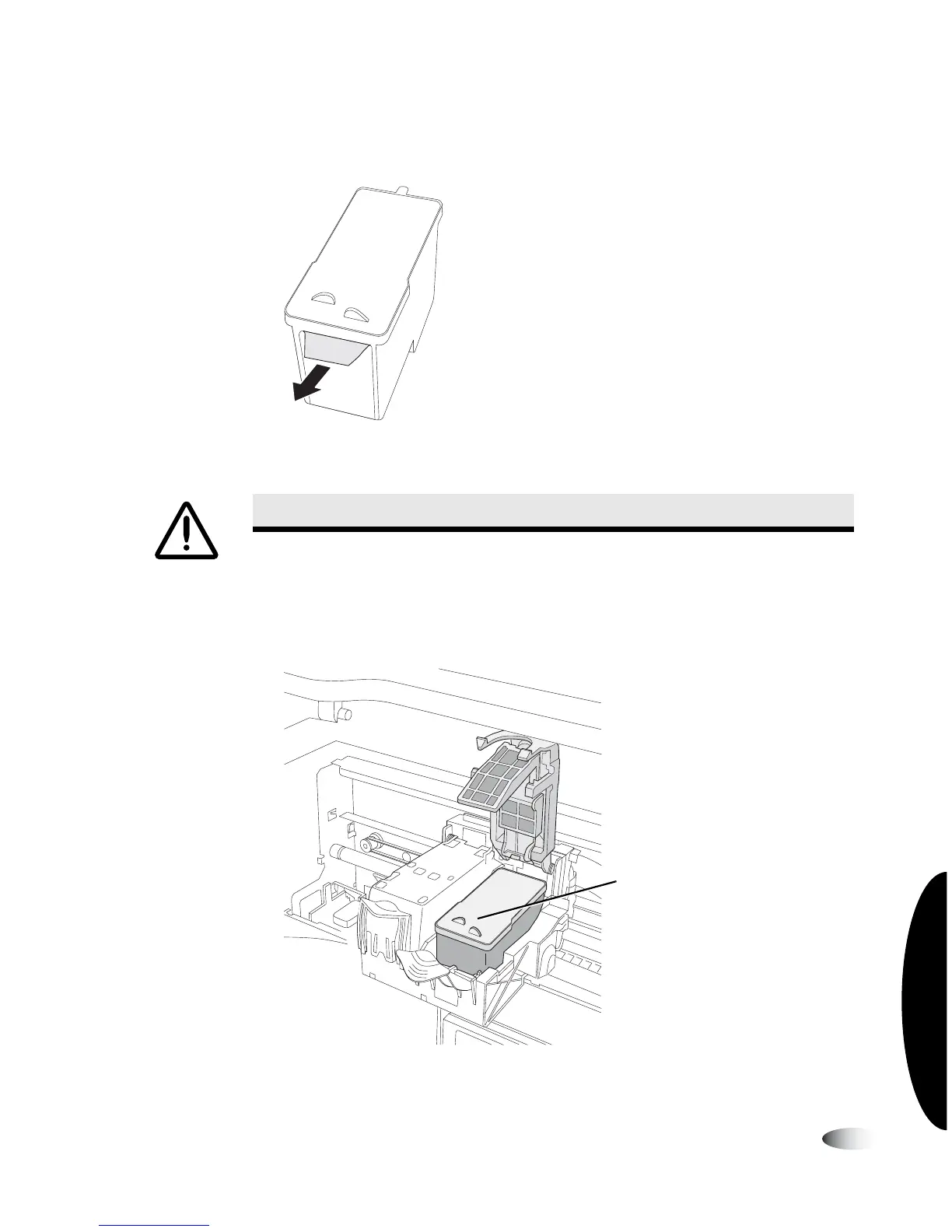 5. Slowly remove the tape covering the cartridge’s print head.