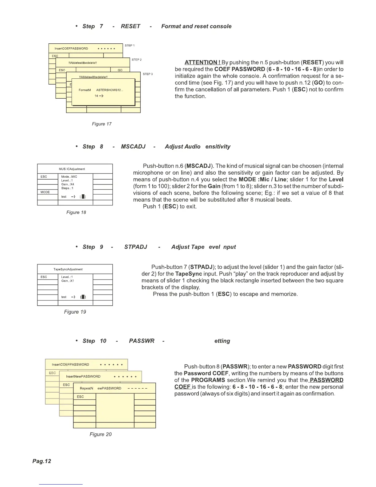 COEF MASTERSHOW 512 - Console Reset and Formatting