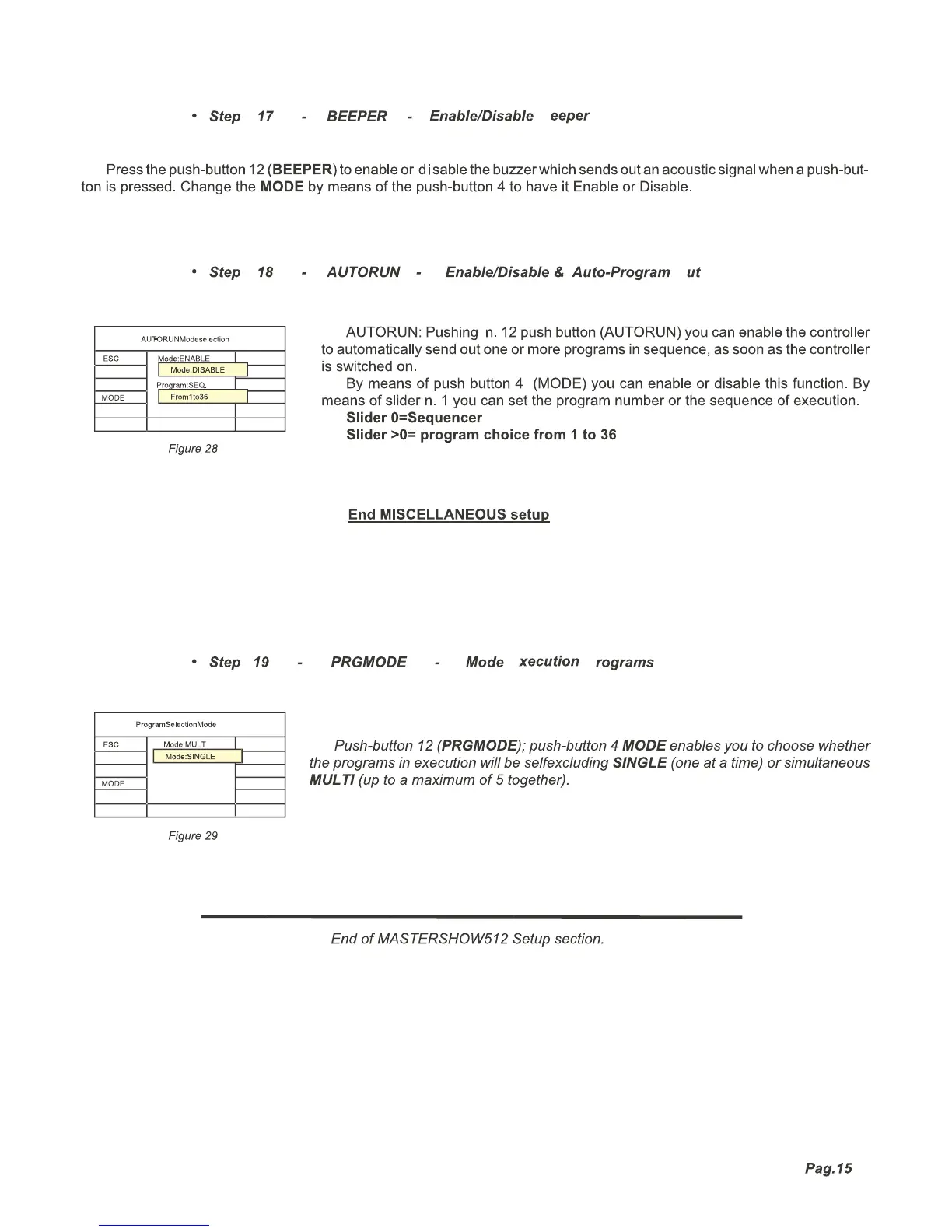 COEF MASTERSHOW 512 - BEEPER - Enable;Disable Beeper; AUTORUN - Enable;Disable & Auto-Program out; PRGMODE - Mode Execution Programs