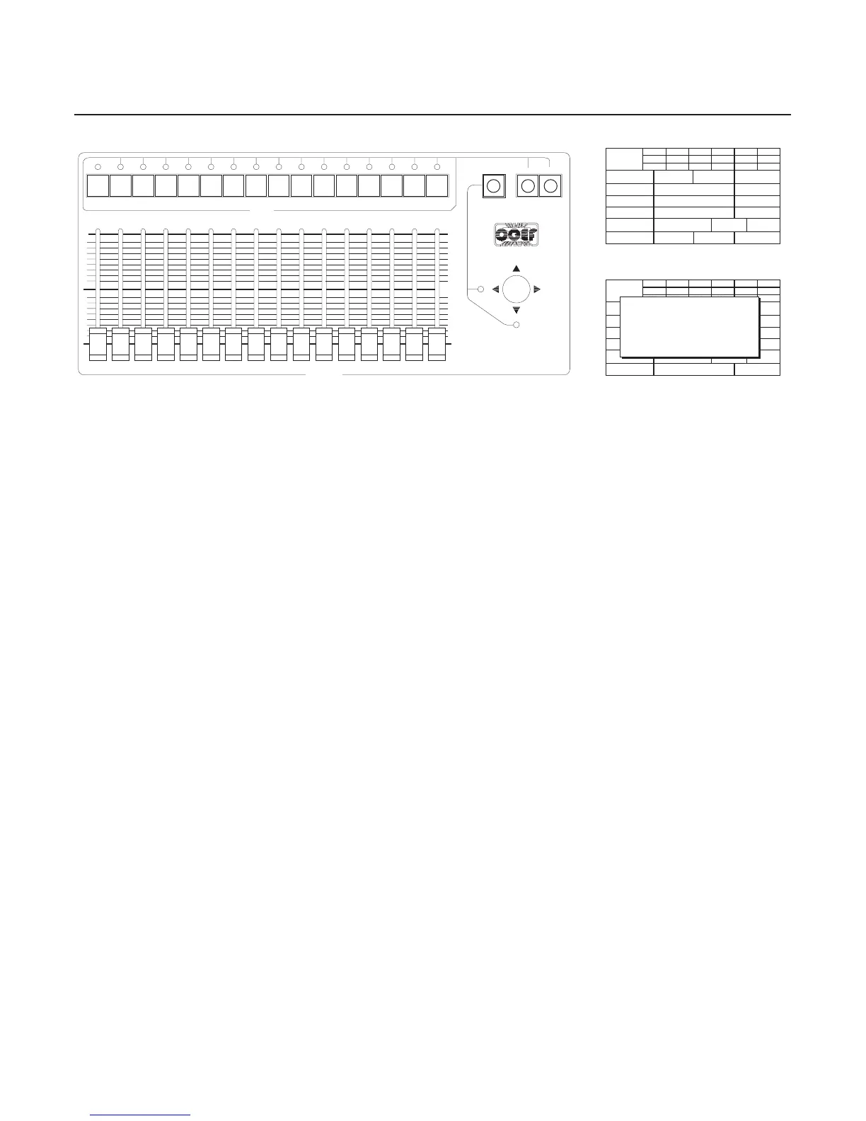 of the channels selected by means of sliders, joystick, channels push-buttons, or with the SELECT push-button (part. H Fig.