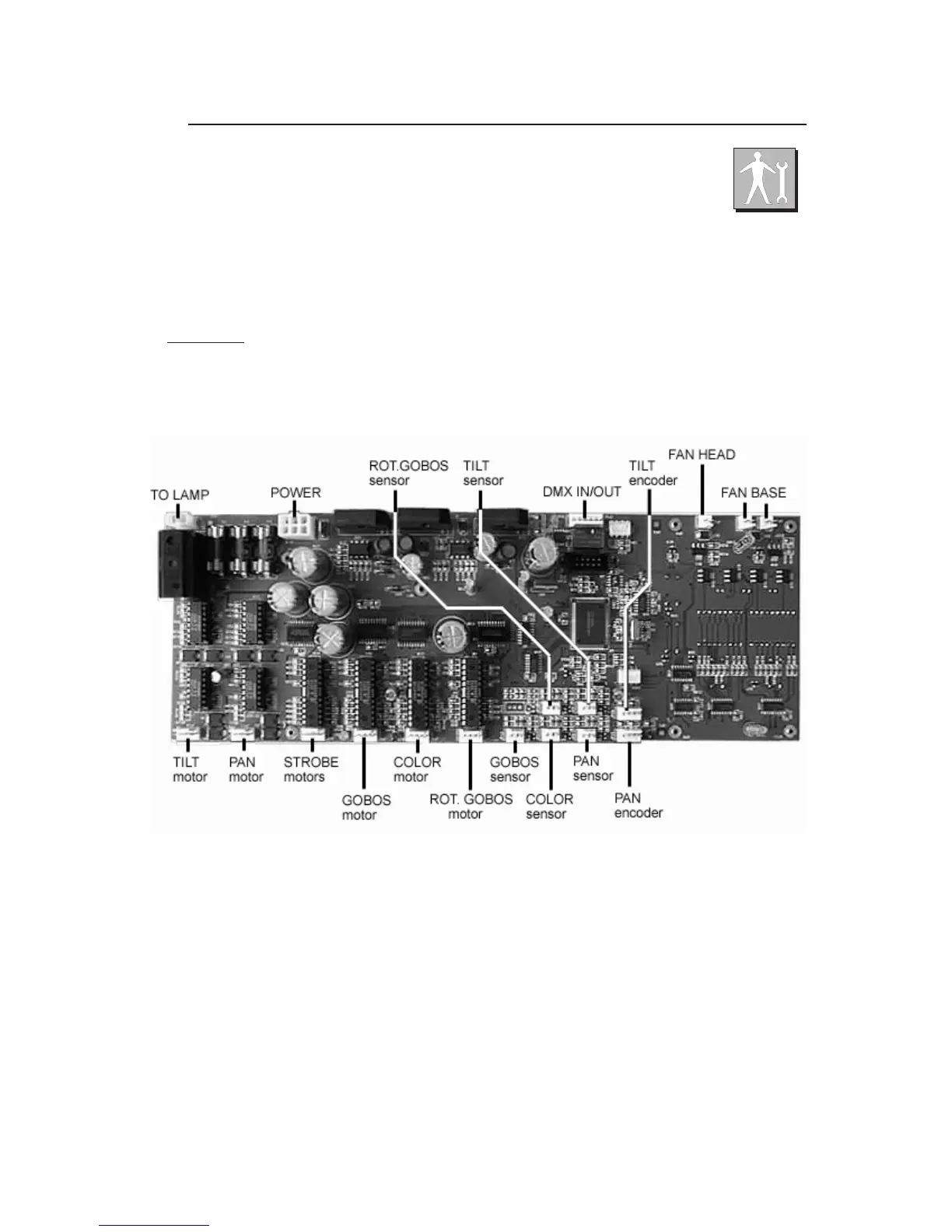 and the sensors of the various effects wheels ( color, gobos, shutter etc.).