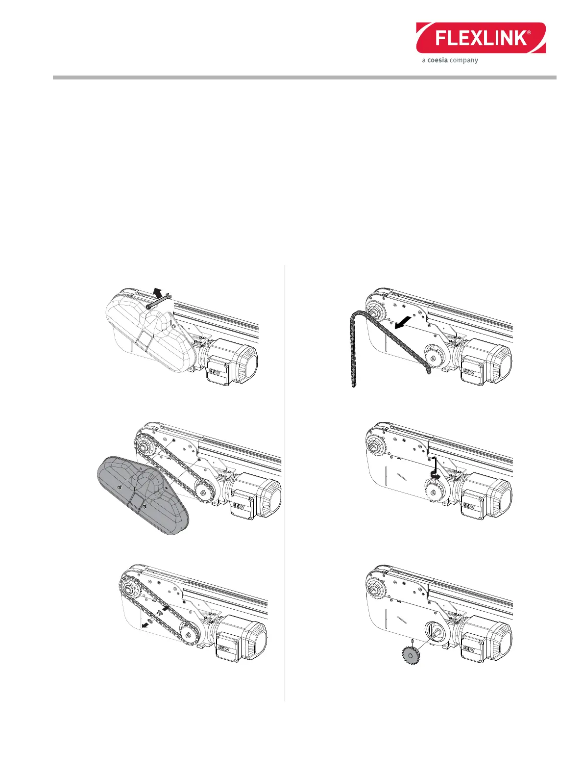Remove the motor gear unit from the conveyor drive assembly. The motor