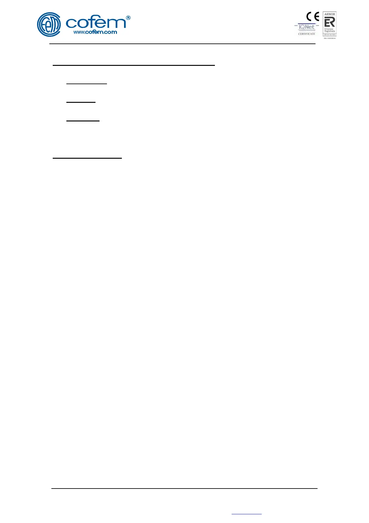 Tlf.: +34 935 862 690 - Fax:+34 936 999 261 - cofem@cofem.com - www.cofem.com