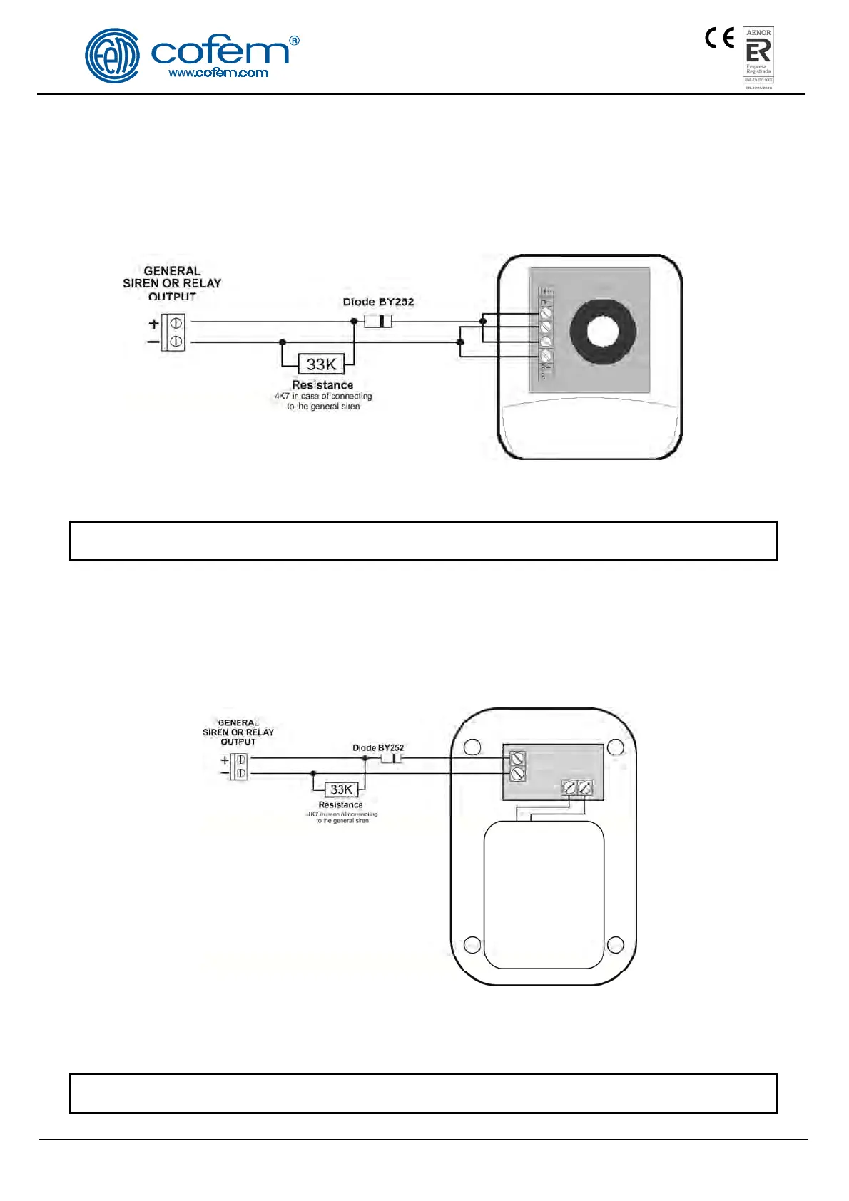 1 33 KΩ Resistance; in the event of the sounder being connected to the general sounder, the resistance
