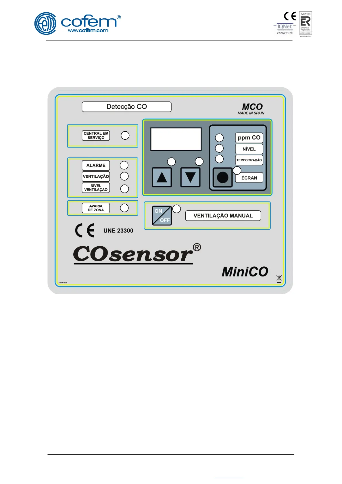 4. ON/OFF Ventilação: Permite activar ou desactivar manualmente a ventilação a