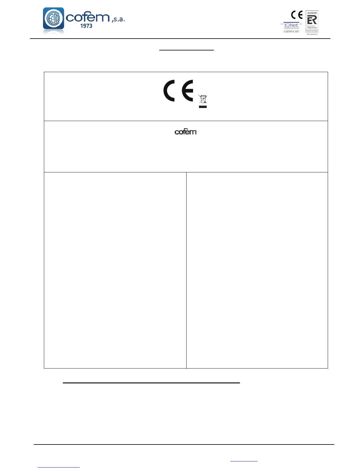 Tlf.: +34 935 862 690 - Fax:+34 936 999 261 - cofem@cofem.com - www.cofem.com