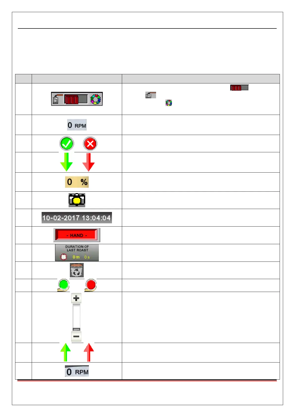 and the work mode (manual automatic). The full roasting process can be carried out using this screen only.