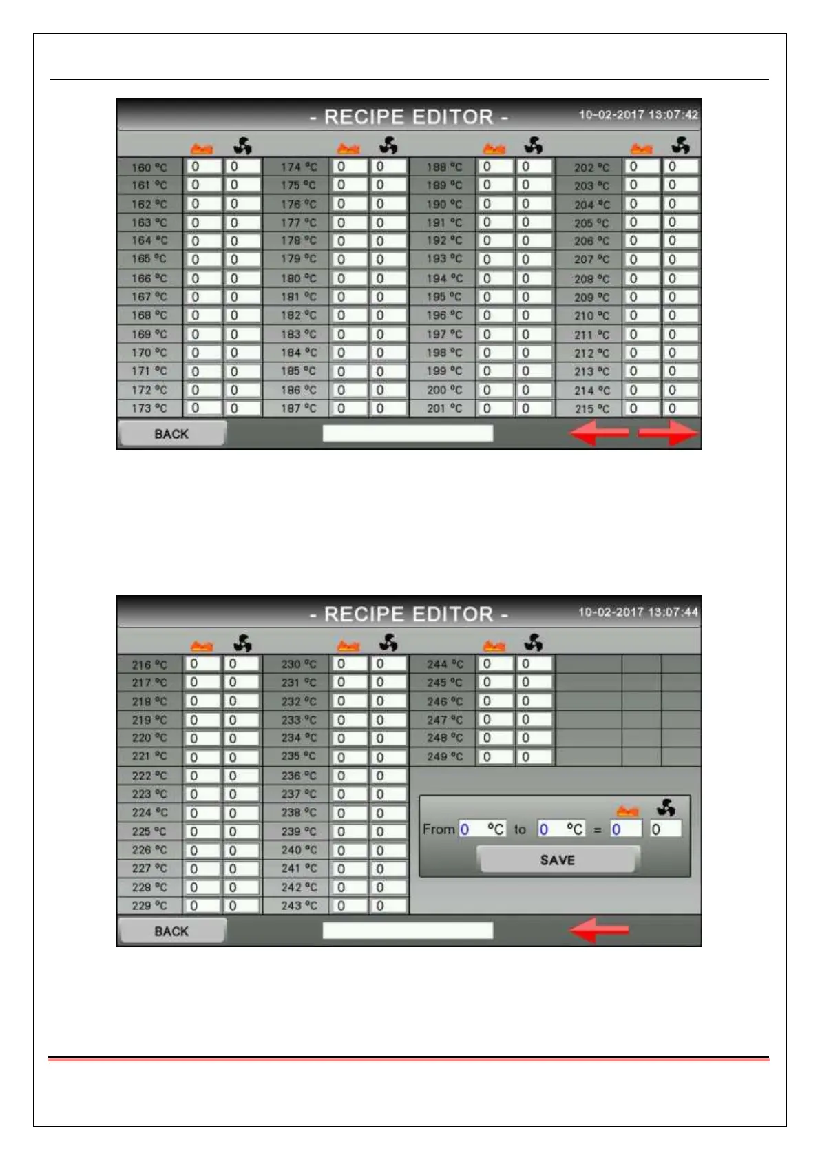 In order to change the power of the burner and exhaust fan for the selected temperature the operator